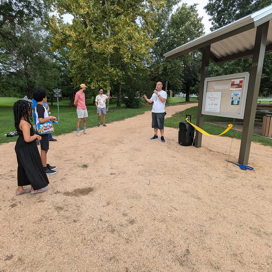Its three acres are full of trails, natural areas and much more! The Friends of Armadillo Park received funding to remove poison ivy that was growing into trails (the poison ivy was a safety concern for park users of the two and four-legged variety!).