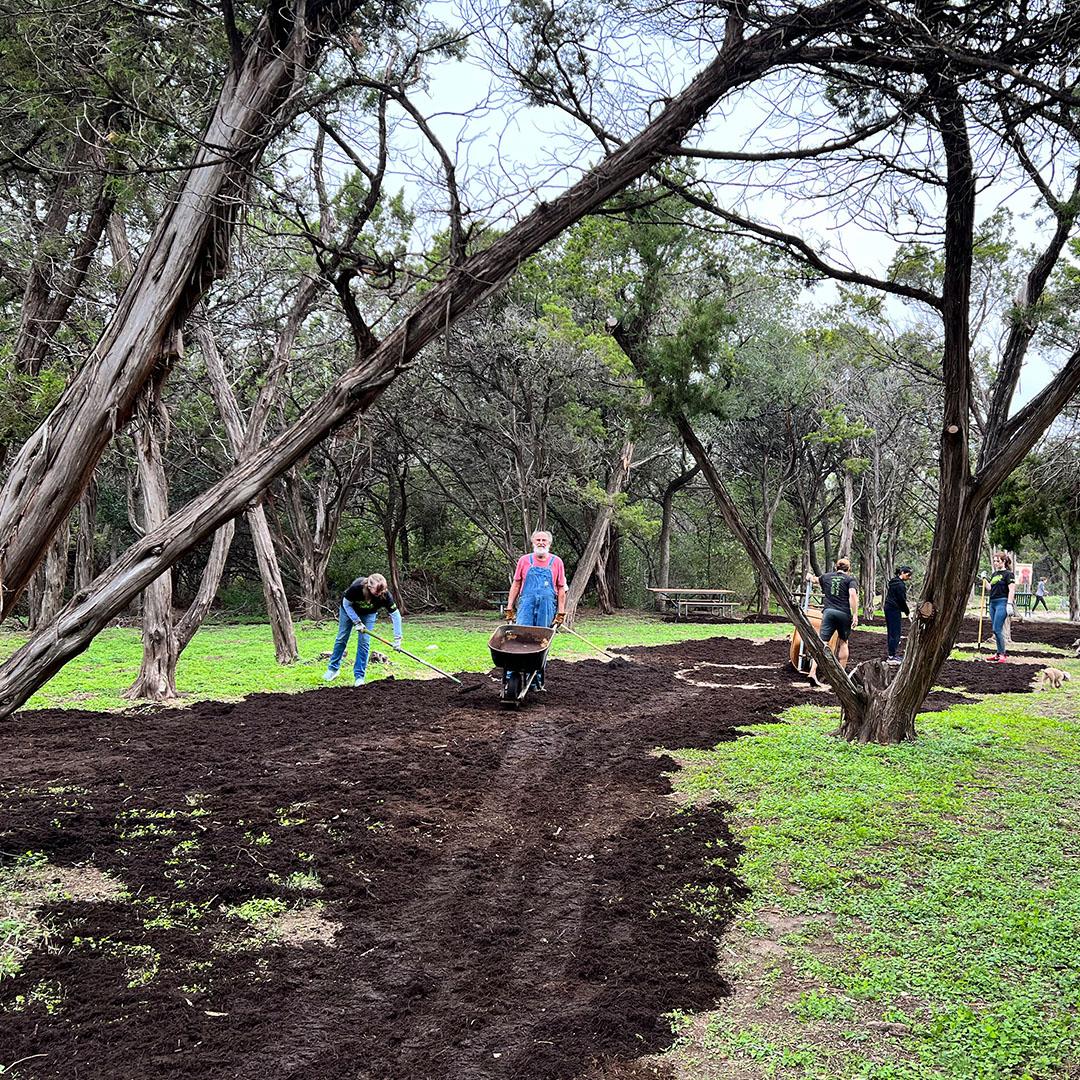 In February 2023, a winter storm froze many parts of Central Texas impacting parks across Austin. Walnut Creek Metro Park was covered with ice which led to the ground being denuded and native plants, trees and grasses being harmed. APF granted the community mulch to help the ground recover and re-grow.