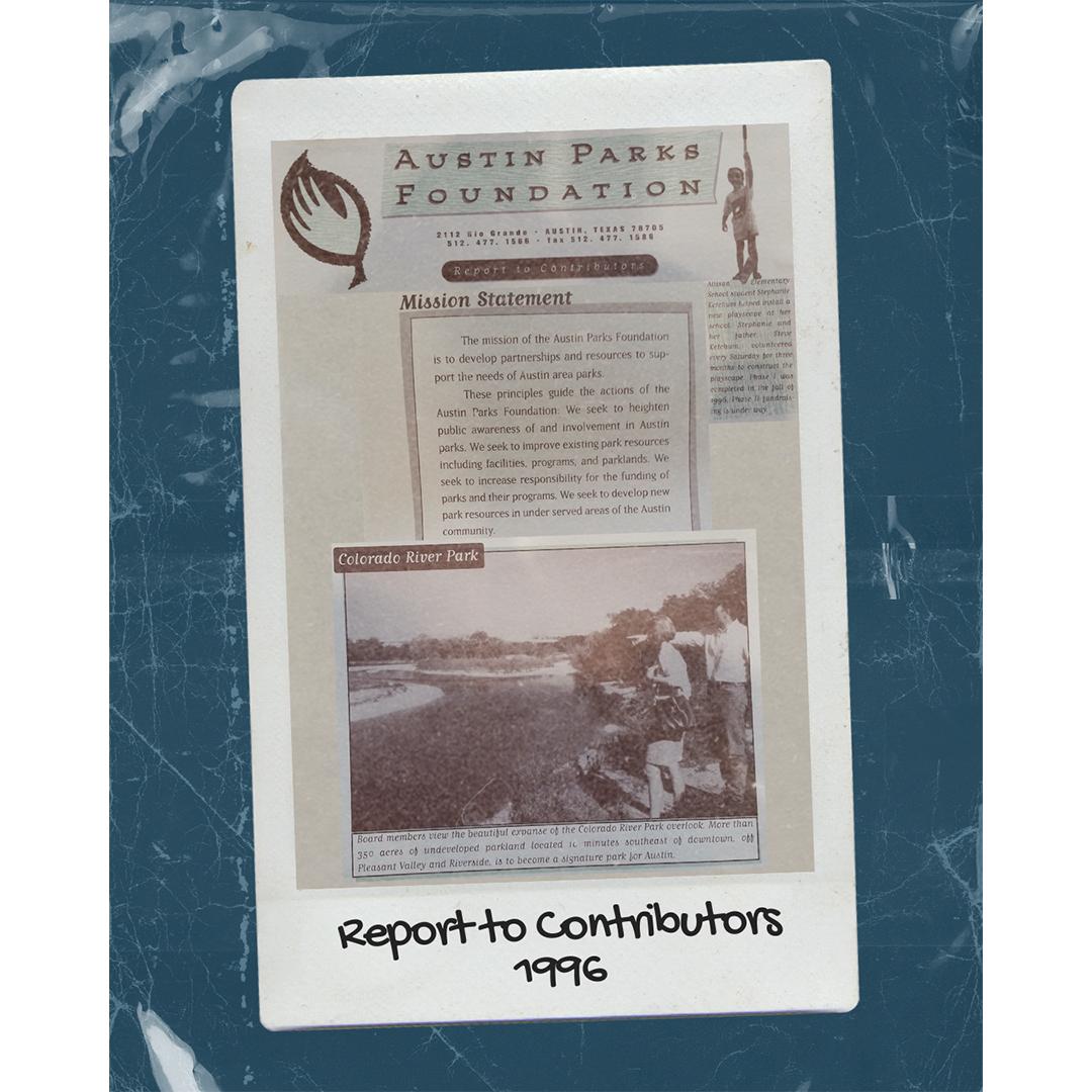 “In 1992, park advocates, recreationalists and environmentalists came together to raise community awareness of the parks in Austin. Many long-time Austinites had seen the city’s park system deteriorate in recent years. The Austin Parks Foundation was born.”