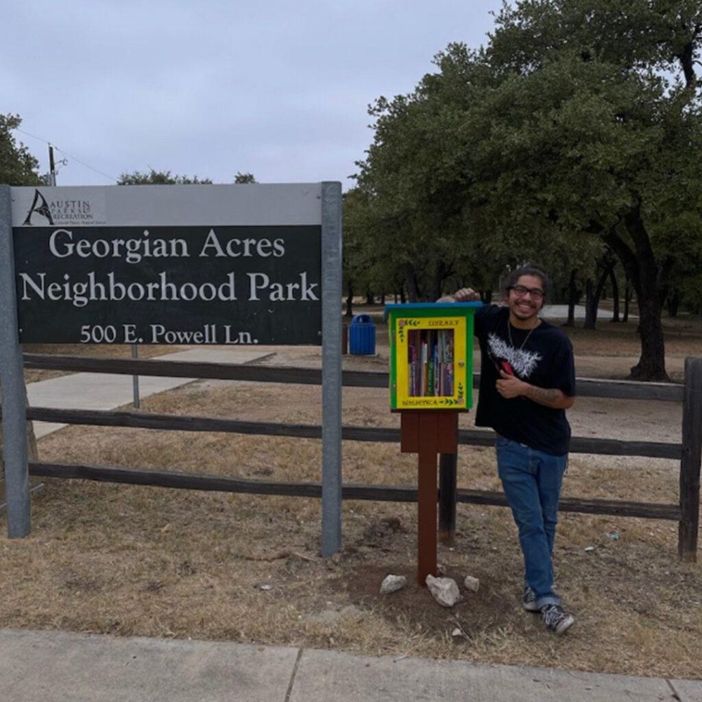 In 2018, Georgian Acres Neighborhood Park received a $100,000 grant from Austin Parks Foundation for implementation and development of the park’s concept plan. Since then the park has served the Georgian Acres neighborhood, but when community members saw a need to further engage neighborhood kids they reached out to APF to ask about getting a Little Free Library installed in the park. Austin Parks Foundation granted the community $800 for the Little Free Library, which was painted by a local tattoo artist installed in November 2024. The Library was commemorated and celebrated by the community on It’s My Park Day Fall!