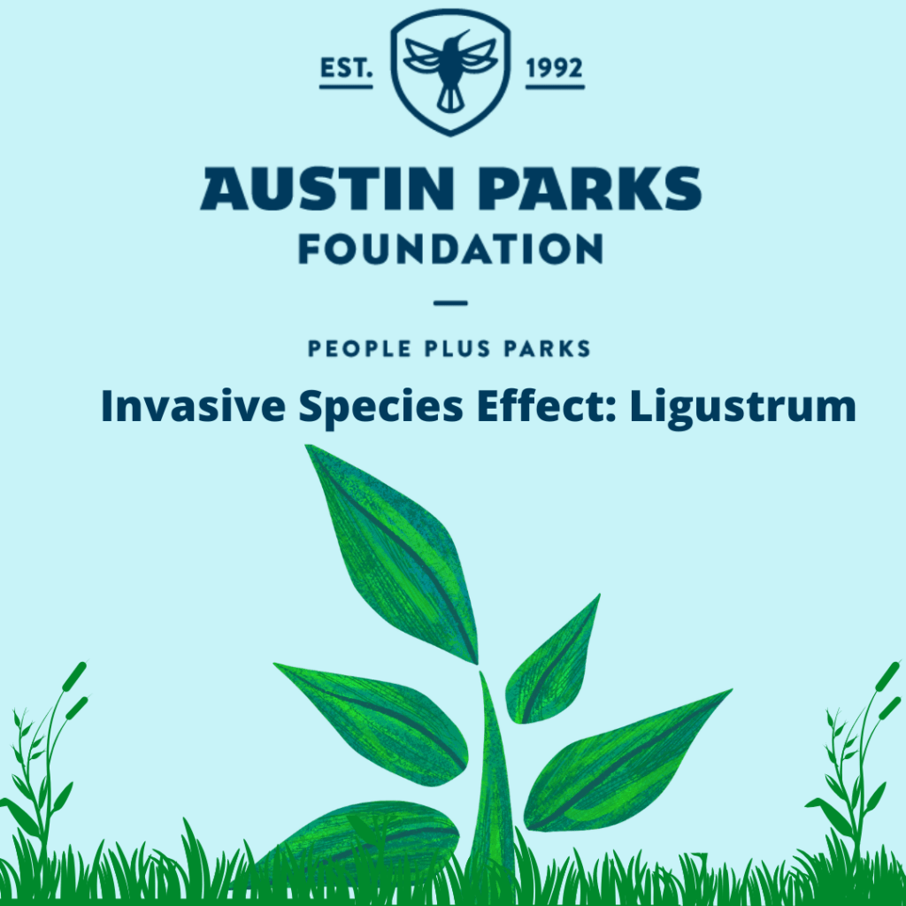 This plant causes a lot of problems. Here at APF we strive to eradicate Ligustrum as often as possible through open workdays and projects during It’s My Park Day!