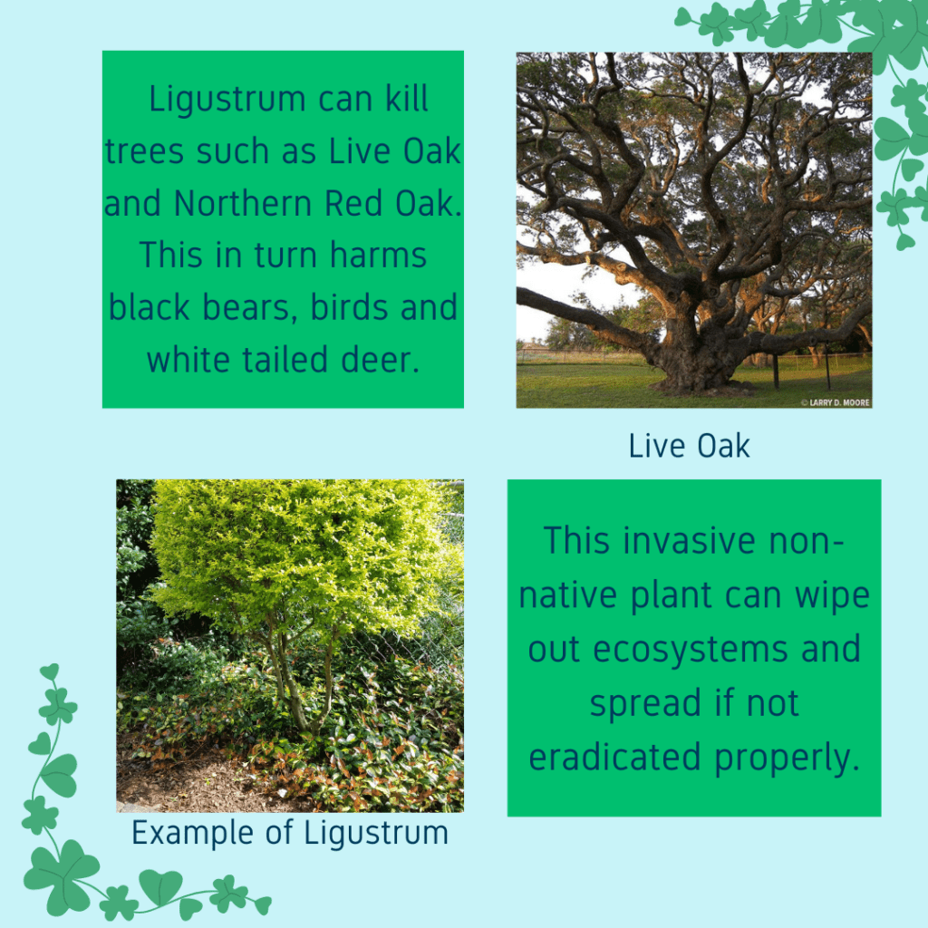Alex, Luci and Allison chose to look at how Ligustrum, an invasive plant, harms and changes an ecosystem when it’s allowed to grow.