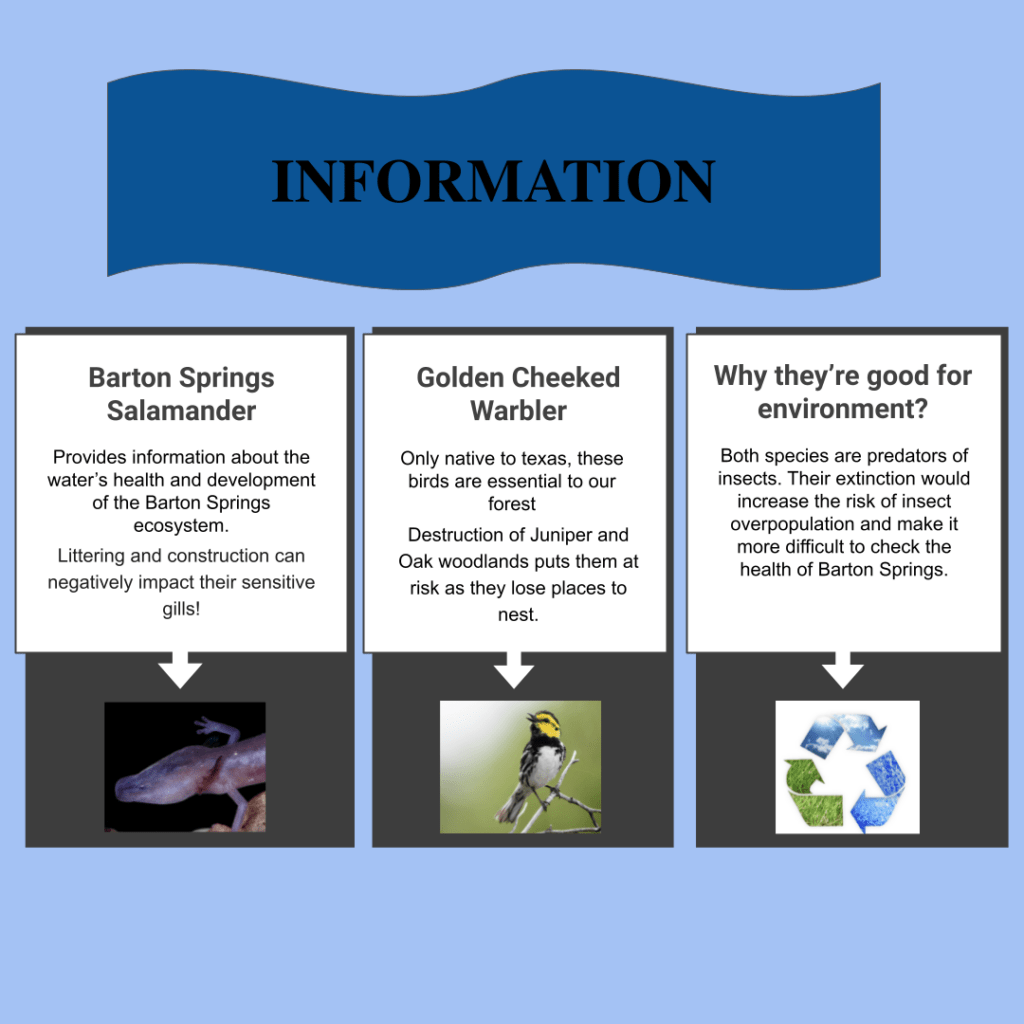 Zaria, Tyler and Sonia wanted to better understand two of Austin’s endangered species – the Barton Springs Salamander and the Golden Cheeked Warbler!
