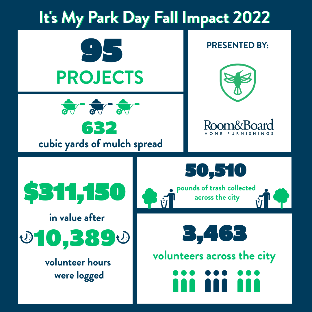 Not only do you get to make a difference in the parks – you’ll receive a coveted It’s My Park Day t-shirt, discounts and freebies from local giveback partners, and a great opportunity to bond with your community. We just wrapped our Spring It’s My Park Day, take a look at all our volunteers accomplished: