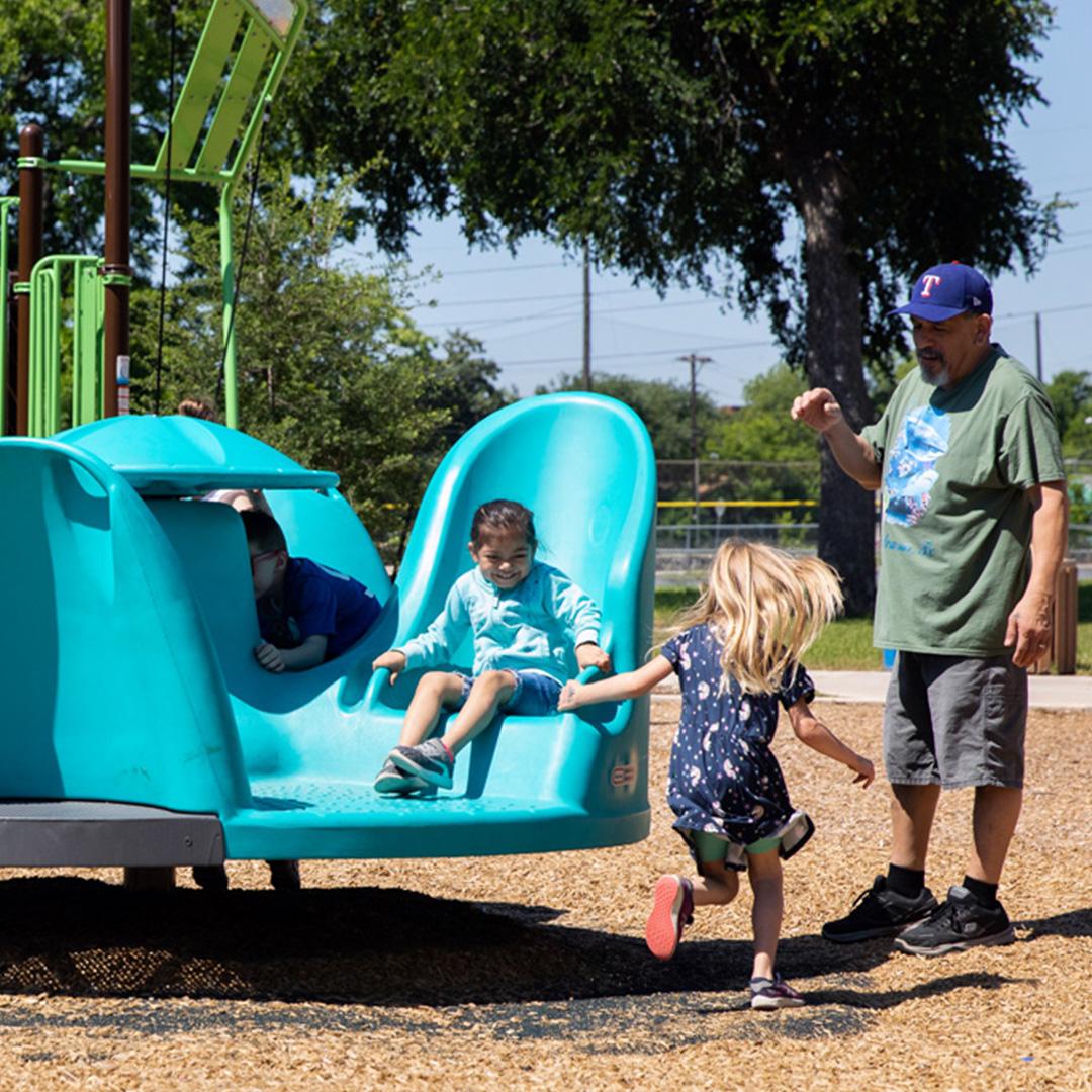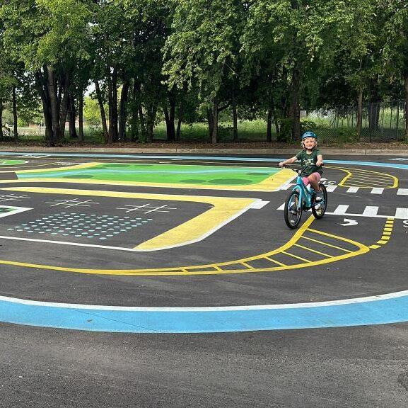 Community input sessions showed strong support for a bicycle traffic garden that would serve park users of all ages and abilities. This scaled-down street network, based on an original design by Discover Traffic Gardens, will enable children and new riders to practice biking and road safety in a car-free space. Austin Parks Foundation partnered with the Amigos and PPS to manage the community engagement and design process, while also overseeing construction. To ensure universal access, APF contributed an additional $50,000 to construct an accessible walkway and ramp system, enabling full participation by Therapeutic Recreation Services participants and all park visitors.