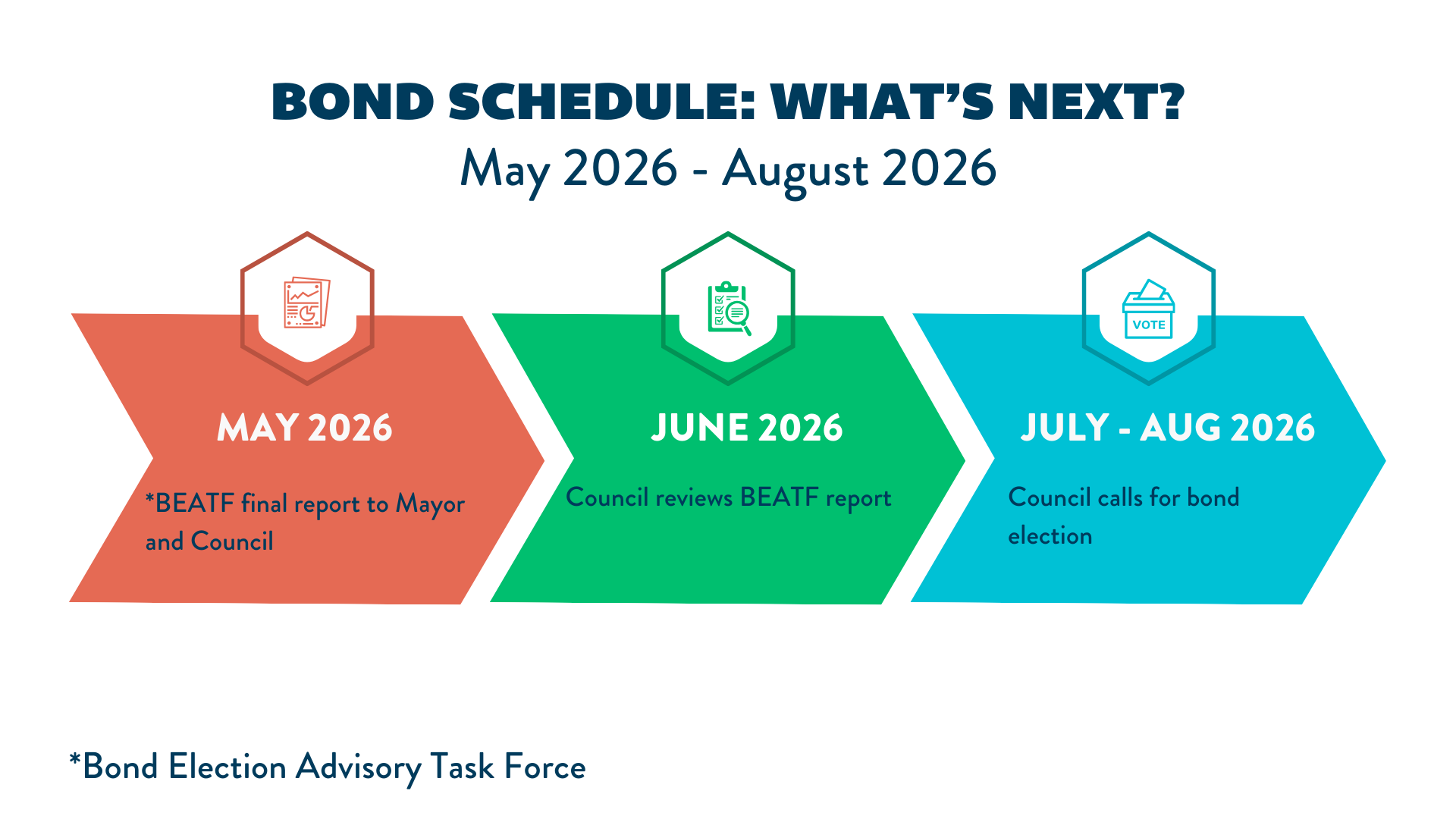 City Council will vote by August 2026 to put a General Obligation Bond Election on the Ballot in November 2026.