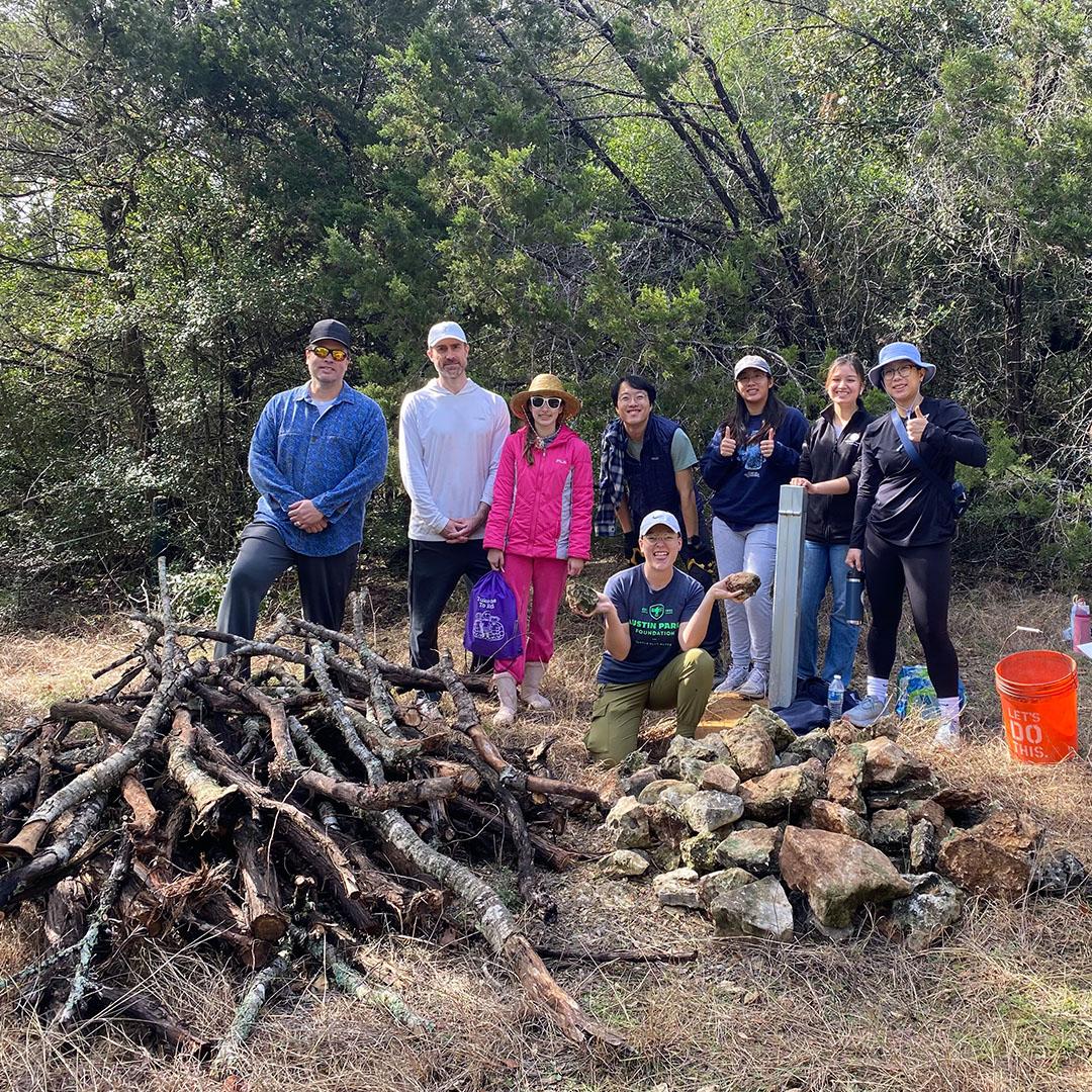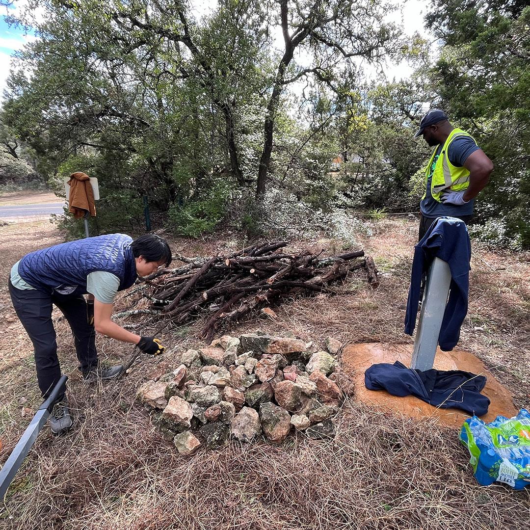 The Old Lampasas Dam Open Workday events allow APF to help in clearing the area around the dam while contributing to Nature Play in the city.