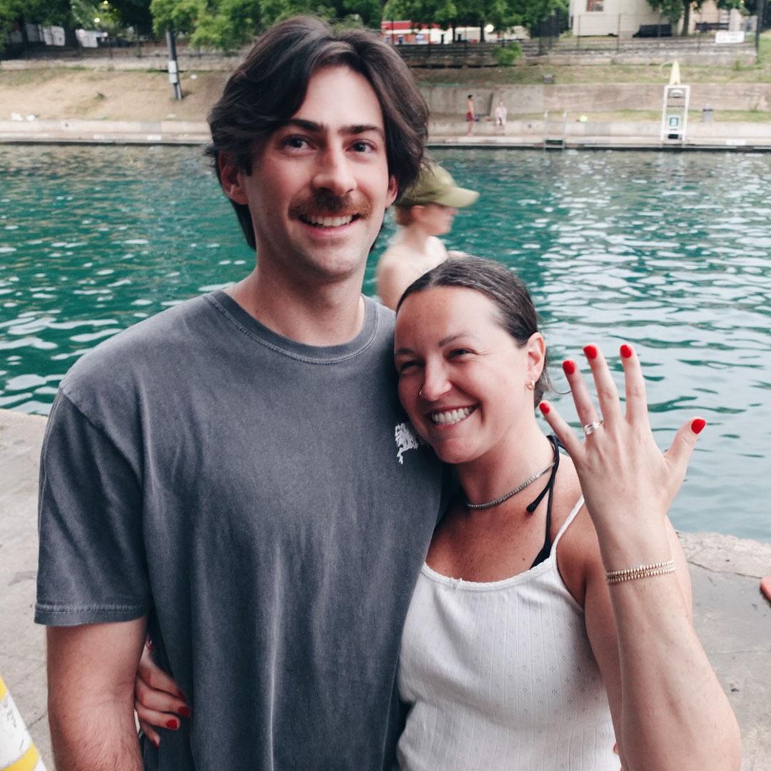 When it came time for Kirton to pop the question, he knew he wanted it to be a surprise (Miller is the planner in their relationship). Kirton’s 30th birthday was on a Thursday and he asked Miller if they could jump in Barton Springs that morning. Miller was quick to say yes – and Kirton’s plan was in place.