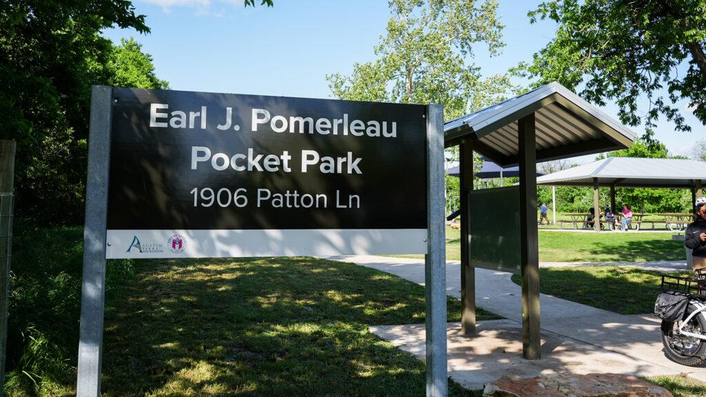Earl J. Pomerleau Pocket Park is Austin’s newest two-acre park in District 4. The concept plan for Pomerleau Pocket Park was adopted and developed in 2019 by Austin Parks Foundation (APF), in coordination with Austin Parks and Recreation Department (PARD). The park opened to the public in July 2023.