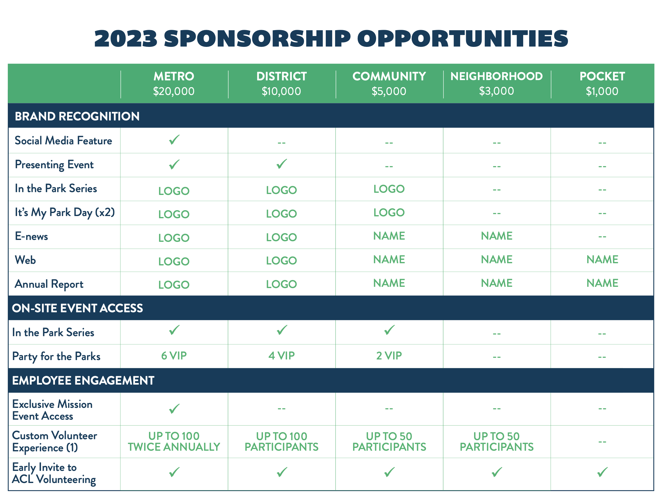 Companies looking for broad community visibility, especially among family and outdoor audiences, will benefit from year-round sponsorship recognition. To learn more about becoming a sponsor, email stephanie.artman@austinparks.org.